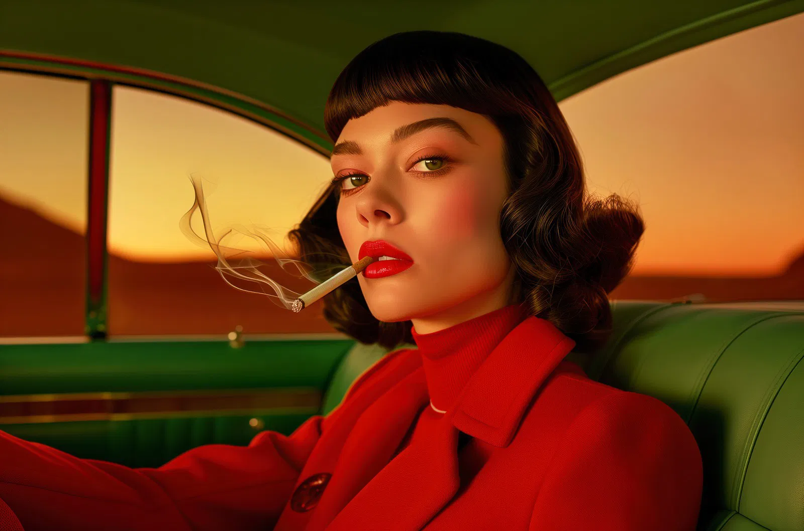 A candid, street-style portrait that captures a raw and fashionable moment in the city. The digital treatment enhances the texture of the environment and the sharpness of the subject’s expressive, direct gaze, full of attitude and personality.